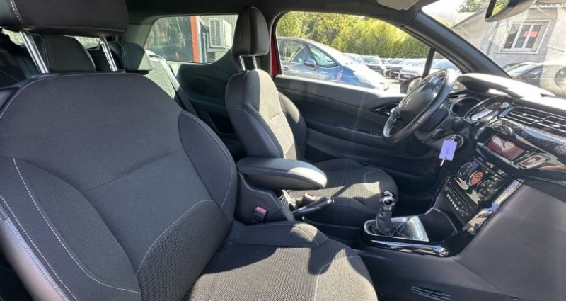 citroen ds3 1.4 hdi70 chic, (berline), rouge, 4cv, 3 portes, mise en circulation le 29-08-2014, garantie 6 mois (garantie commerciale offerte). 5 places, couleur intérieur : noir, longueur : 3,95 mètres, boîte de vitesse : manuelle options et equipements : audio - télécommunications - prise jack - prise auxiliaire de connexion audio extérieur - rétroviseurs électriques intérieur - prise 12v - siège conducteur réglable en hauteur - verrouillage centralisé à distance - vitres avant électriques - vitres teintées - volant réglable en profondeur et hauteur sécurité - abs - airbag conducteur - airbags rideaux av et ar - phares antibrouillard - préparation isofix kilométrage non garanti. référence annonce : 9920